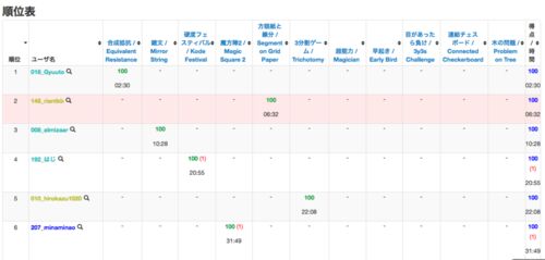 宣伝 コード祭りの参加記については ひとり Advent Calendar 2016 - Adventar の序盤の記事としてもっとちゃんと書きます。今は、簡単な総括と、あと“““圧勝を収めた[要出典]チームリレー”””について何が起きたのか適当に書きます。 (チームリレーに関して…